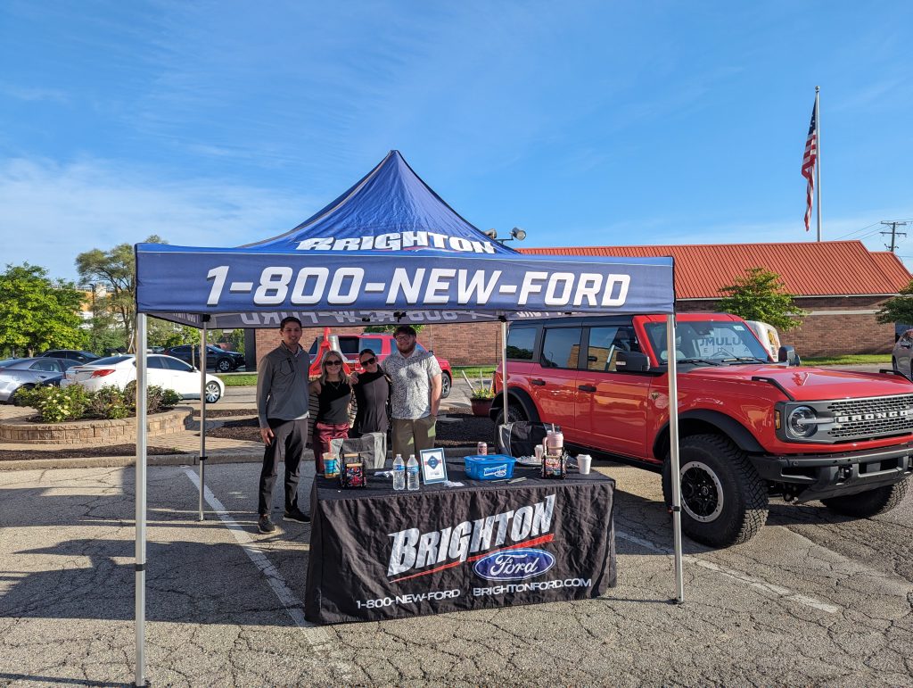 Our Spirit Squad kicked off its first event together as a team for the summer. The first event that stood in front of us was Firehouse Friday. Taking place at the Brighton Firehouse located on 615 W. Grand River, Brighton, MI 48116. Bright and early the team, including Zackary Nouhan, Olivia Swamba, Elise Lippolis, and Miles Grey, arrived around 6:00 A.M. to set up our tent and brand new Bronco. We had to make sure everything was ready for a day filled with excitement and community involvement.
